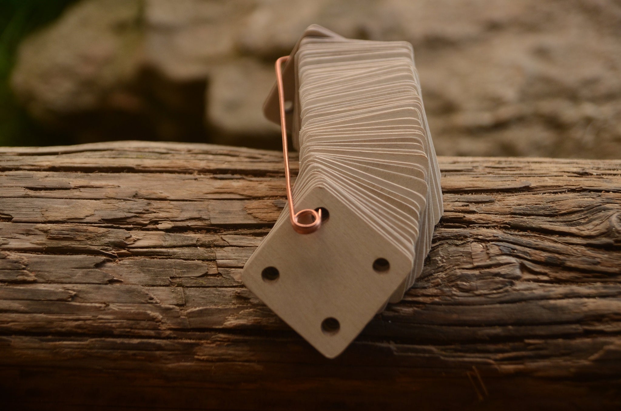 Perfect for tablet/card weaving or use on weaving looms. These ultra-thin yet strong 3-layer hardwood plywood cards allow you to hold 30–40 or more tablets in one hand for wide braids. In the pictures, the thickness of 10 cards is less than 1 cm.