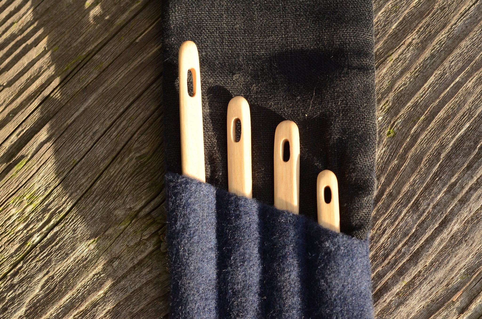 Nalbindin needles, Needles for weaving, Naalbinding, Wooden needles with case, Viking weaving, Medieval art, Ethno craft, Baltic weaving