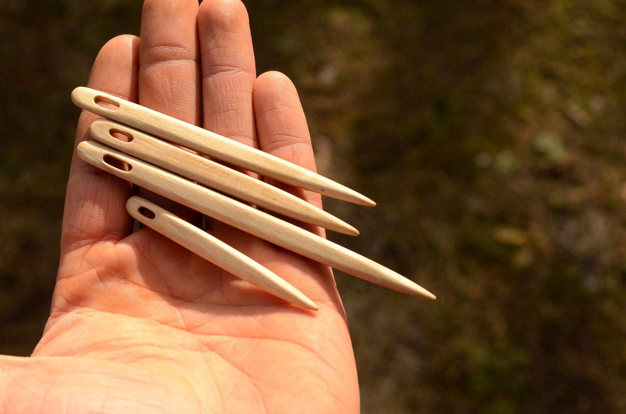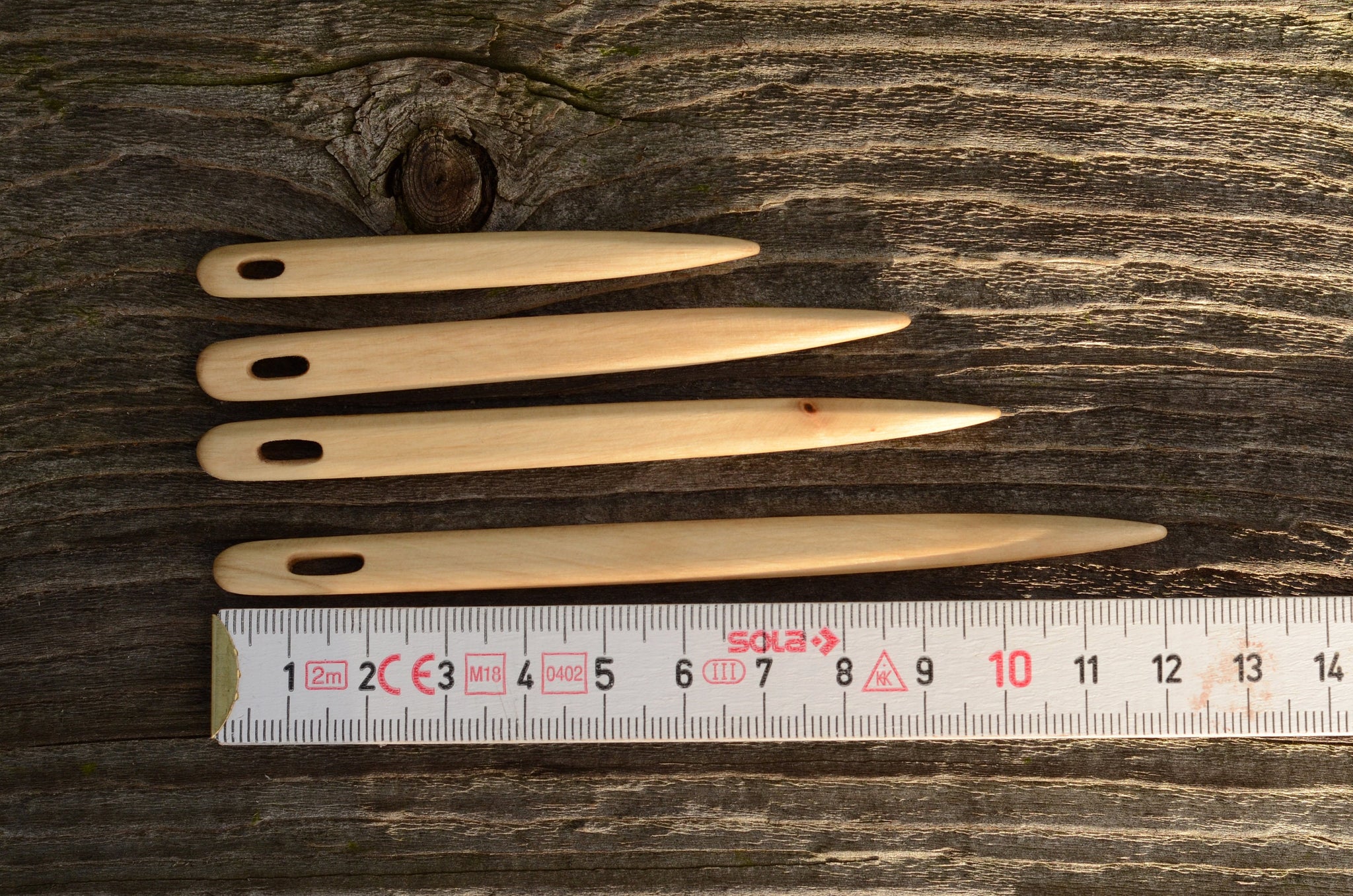 These 4 nalbinding needles are cut out from solid and elastic hardwood - Hornbeam. Preserved with mineral oil and wax mix. No wrinkles, no sharp corners.