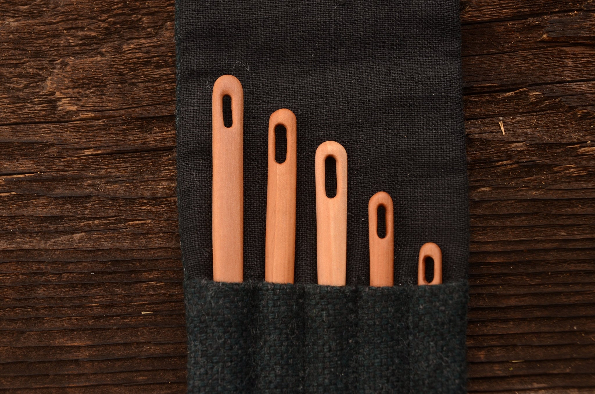 Nalbinding needles with case / Apple tree wood / Set of 5 wooden needles / Handcarved needle / Nålebinding / Nålbinding / Medieval needle /