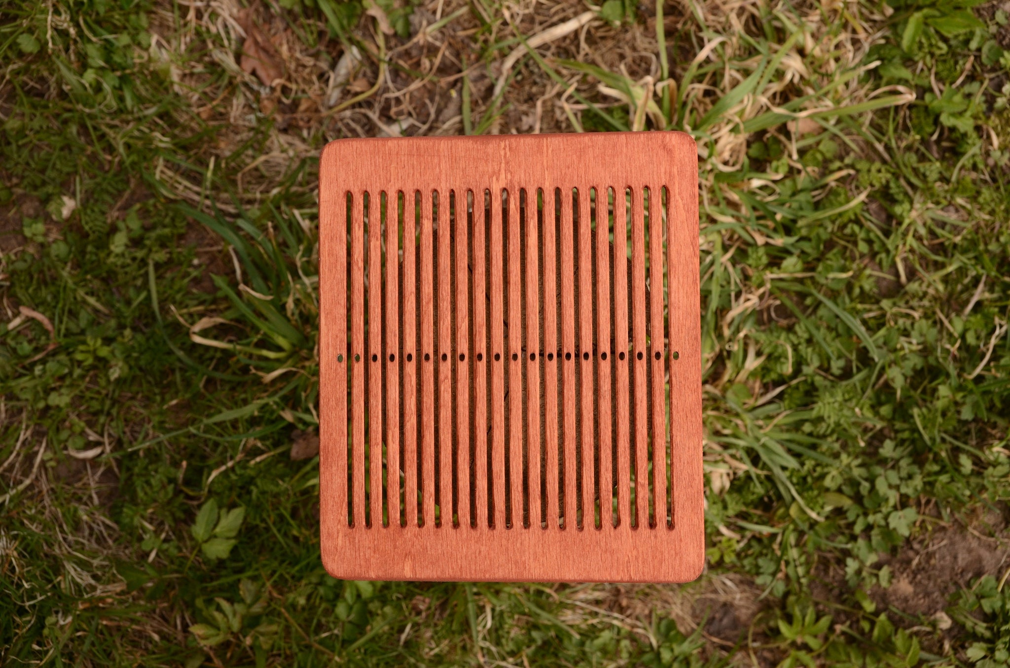 Heddle board and shuttle are sanded smooth and finished with absolutely natural mixture of red color sulfate, linseed oil and bees wax.